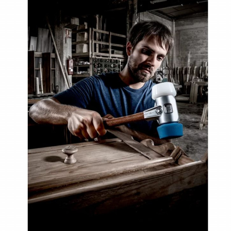 Zilais TPE-soft uzgalis (sērija 3201, zils, mīksts, neatstāj pēdas) ir mīkstākais SIMPLEX sērijas uzgalis un nodrošina spēcīgu trieciena amortizāciju darbiem, kuriem nepieciešams viegls pieskāriens. Atšķirībā no parastiem gumijas āmuriem, tas neatstāj nevēlamas melnas pēdas nospiedumus.
