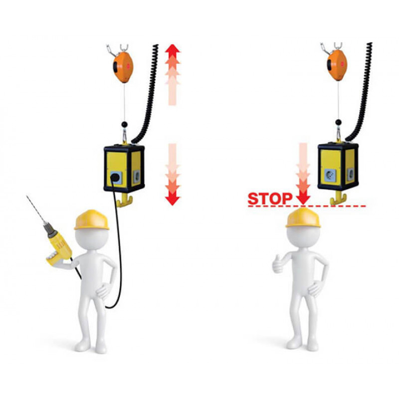 Ideāls palīglīdzeklis augstumā regulējamai barošanas bloku pozicionēšanai diapazonā no 2,0 līdz 7,0 kg un troses garuma diapazonam līdz 1,5 m.