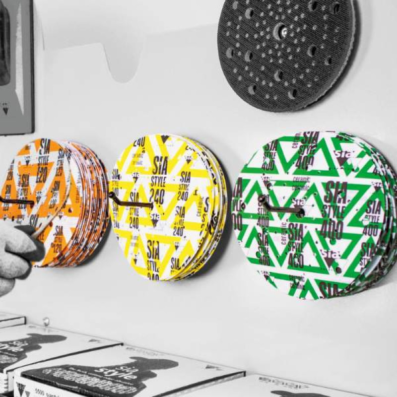 5500 siastyle — svaigs, moderns abrazīvs. Jaunais, krāsu kodētais 5500 siastyle abrazīvais materiāls pārsteidz ar absolūtu slīpēšanas procesa uzticamību un svaigu abrazīvā materiāla dizainu. Izturīgais abrazīvo graudu novietojums kopās garantē maksimālu slīpēšanas produktivitāti un nepārtrauktu slīpēšanas darba procesu. Spēcīgajai sintētiskā materiāla slīpēšanas disku pamatnei ir augsta plīsuma izturība, kas var izturēt pat vislielākās slodzes. Mūsuprāt, visefektīvākais abrazīvais materiāls!