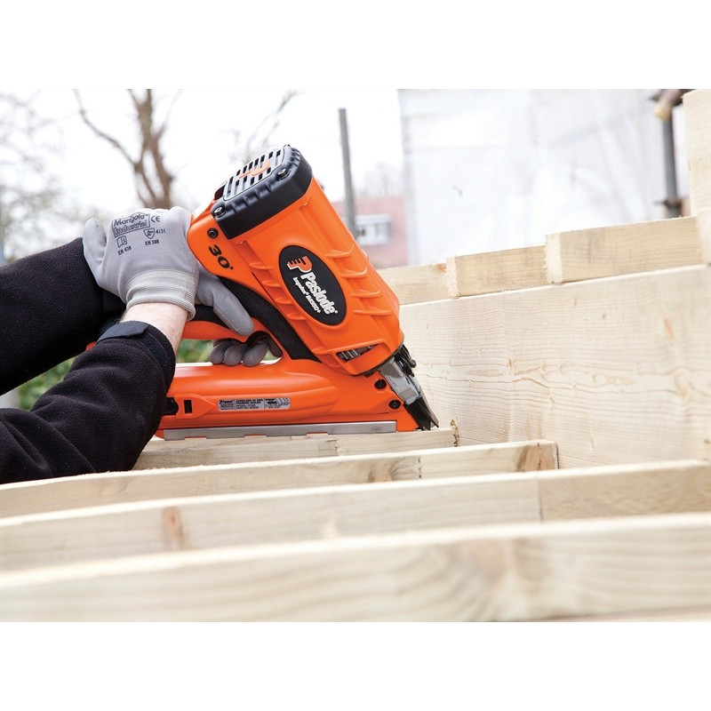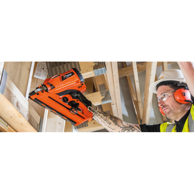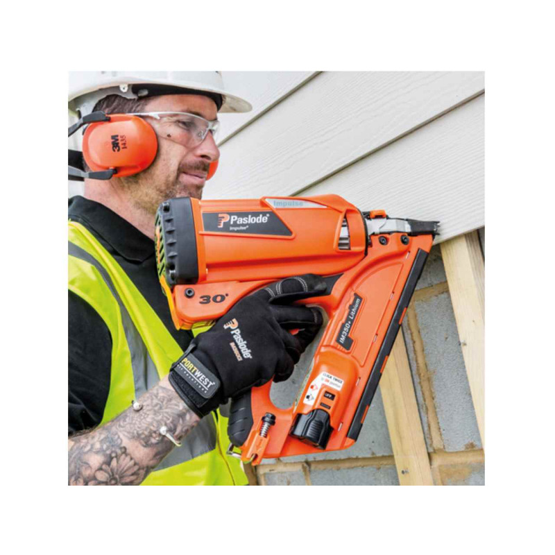 Paslode gāzes naglotājs IM350+ karkasa, rāmju un jumtu naglošanas darbiem, koka apšuvumu, apdares darbiem un citu koka detaļu savienošanai, klājumu, segumu un citu koka konstrukciju naglošanas darbiem, bezpakāpju naglošanas dziļuma regulēšana, maksimālais naglas izmērs D3,1x90mm (gludās naglas)
