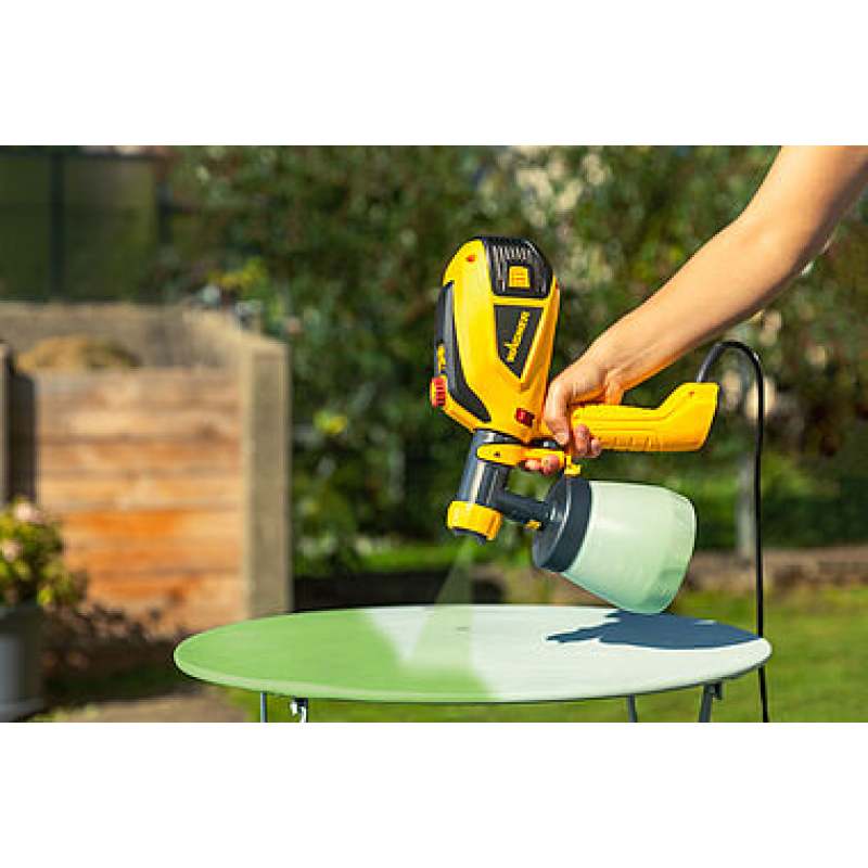 Pateicoties diviem maināmiem tvertnes uzgaļiem, kas paredzēti zemas un augstas viskozitātes materiāliem, lietotājs ir ideāli aprīkots, lai apstrādātu sienas un griestus, kā arī lai uzklātu koka un metāla krāsas.