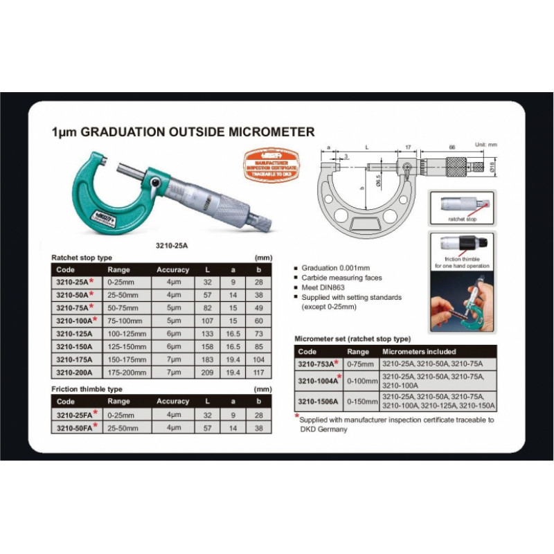 • Apgādāts ar iestatīšanas standartiem (izņemot 0-25 mm)