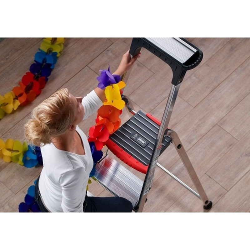 "Double Decker" ir lieliskas sadzīves kāpnes. Drošas, izturīgas un aprīkotas ar daudzām noderīgām papildus funkcijām. Šīs vieglas alumīnija kāpnes palīdzēs jums veikt nelielus mājas darbus.