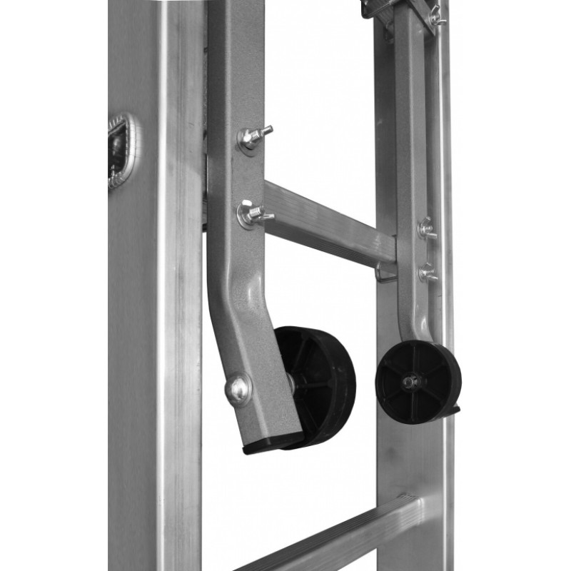 • Izturīgie plastmasas riteņi ļauj pārvietot kāpnes uz jumta!