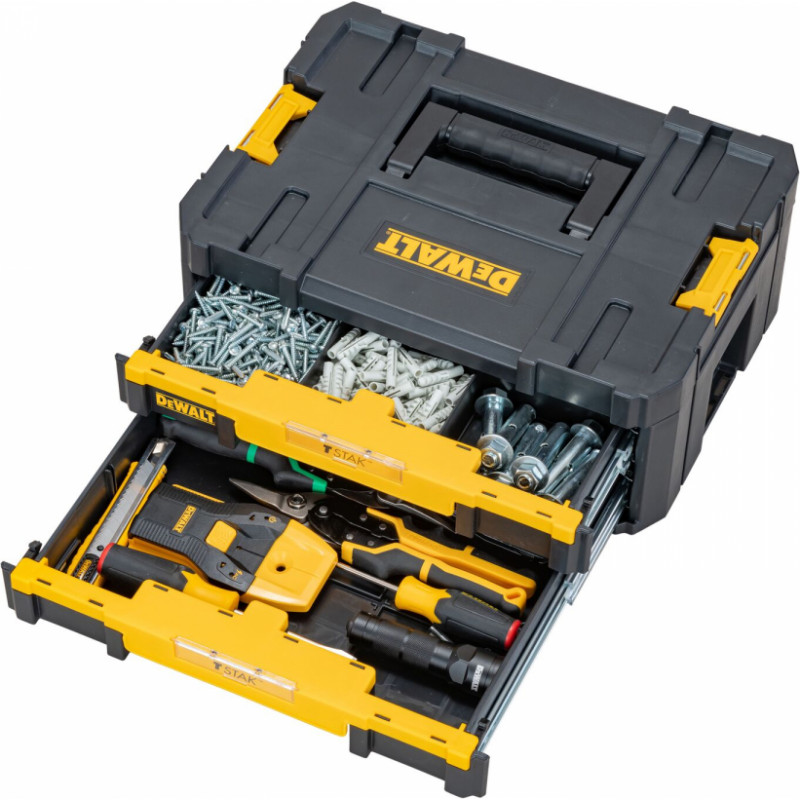 • Inovatīvs dizains. • Noņemami nodalījumi mazām daļām un piederumiem. • Iespēja savienot ar citām TSTAK kastēm. • 2 dažādu dziļumu atvilktnes. • Metāla atvilktņu sliedes.