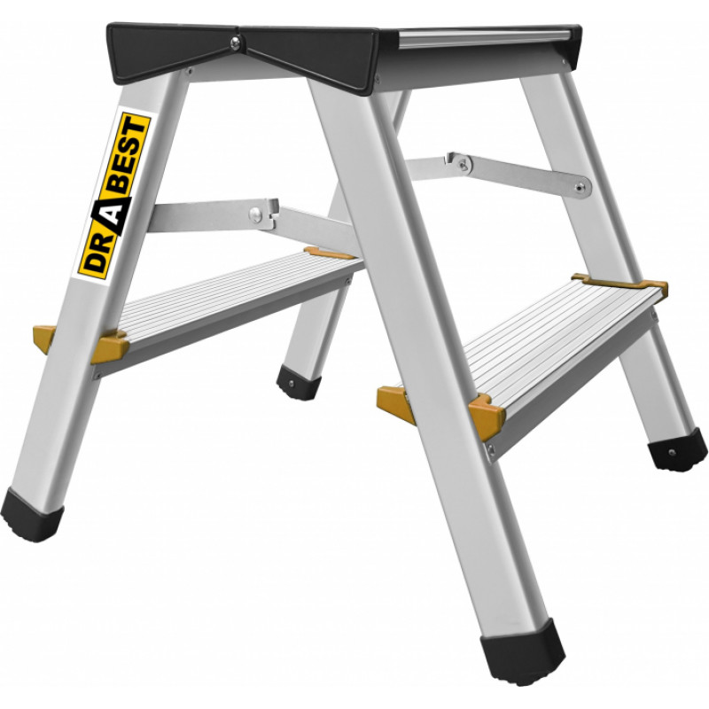 Augstas kvalitātes divpusējās alumīnija kāpnes DRABEST DD2 ar saliekamām kājām ir izstrādājums, kas paredzēts darbam mazākā augstumā. Tam ir izcila stabilitāte un izturība.