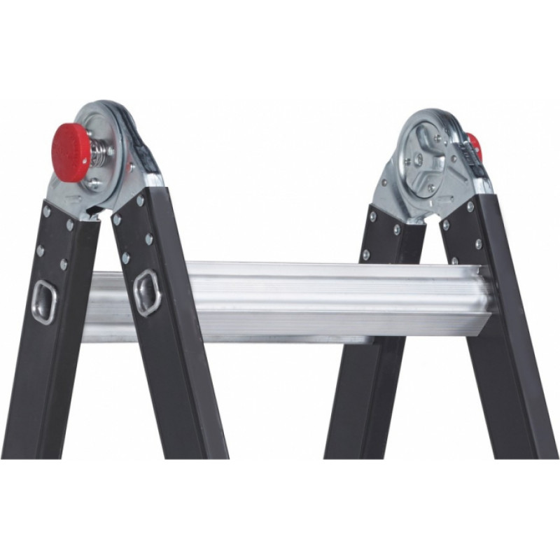 • Izliektas sijas un neslīdošas kājas vienmēr ir drošas un stabilas. Unikālā 3-PIN autolocking® viru sistēma bloķē kāpnes jebkurā pozīcijā. Garantēta drošība! Viedā eņģu sistēma. Ar 3-PIN autolocking® savienotāju sistēmu ir rūpīgi pārbaudīti vairāk nekā 12 000 cikli. Optimāla drošība un uzticamība.