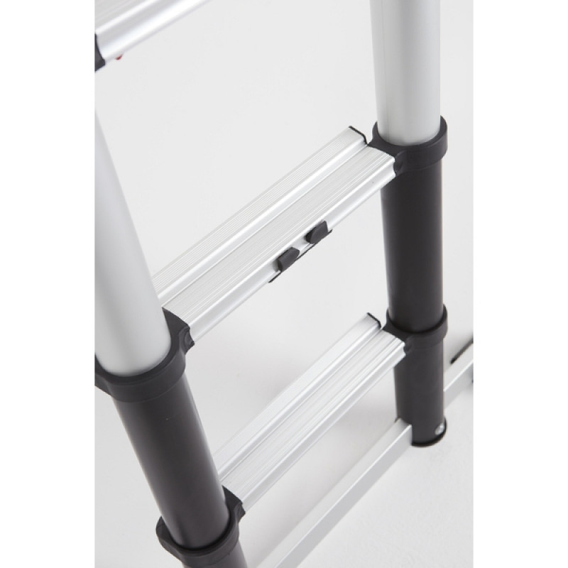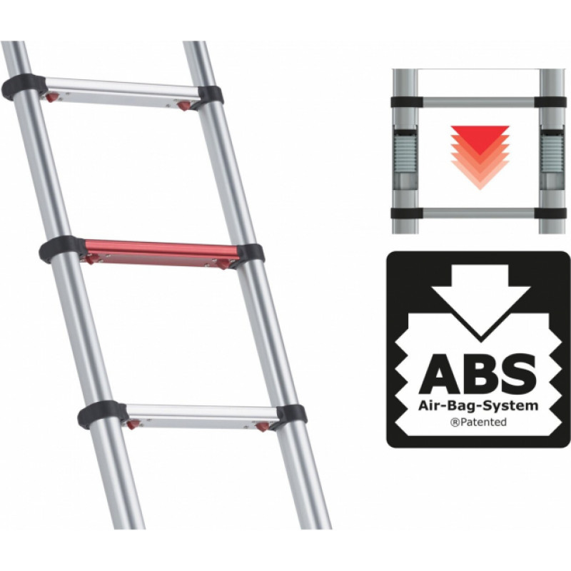 Jūs vienmēr varat droši strādāt ar šīm teleskopiskajām kāpnēm. Ar īpaši dziļajiem protektoriem jūs vienmēr esat drošs un stabils.