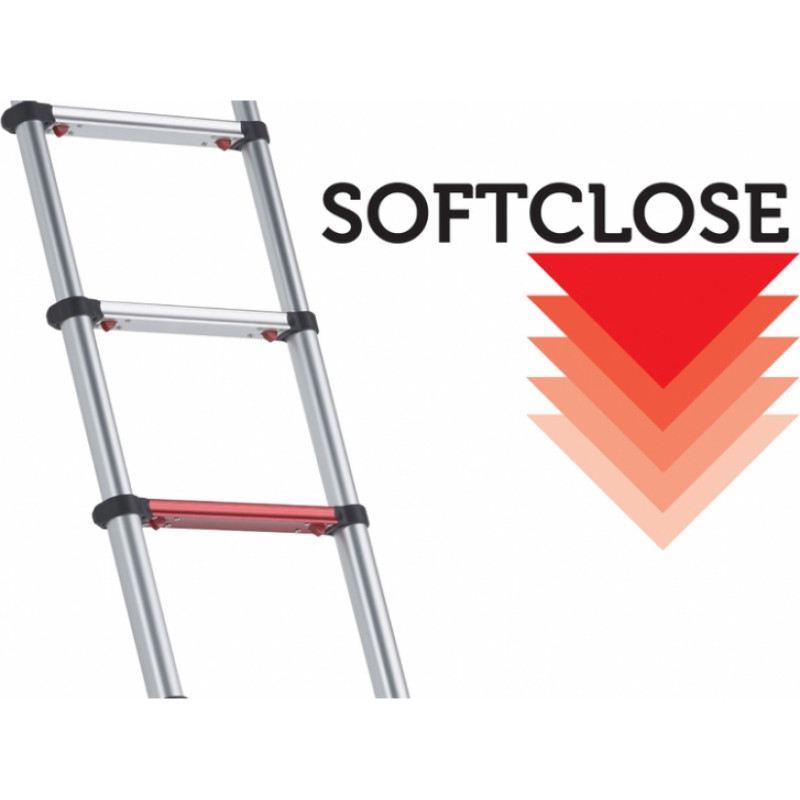 zmantojot mīksto aizvēršanas sistēmu, teleskopiskās kāpnes pakāpeniski ievelkas pēc atbloķēšanas. Izmantojot šo sistēmu, jūsu rokas / pirksti ir optimāli aizsargāti.