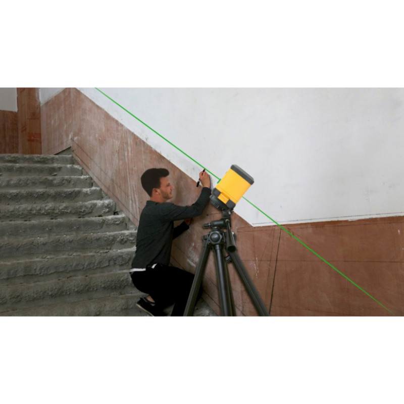 • Pašlīmeņojošs: dažās sekundēs projicē horizontālas un vertikālas līnijas uz līdzenām virsmām un līmeņiem