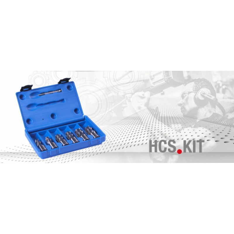 Metāla urbšanas kroņu komplekts + centrēšanas ass (7 gab.).