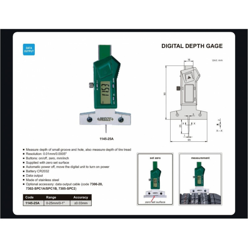 Digitālais dziļuma mērītājs Insize 0-25mm/0-1" - 0,01mm/0,0005".