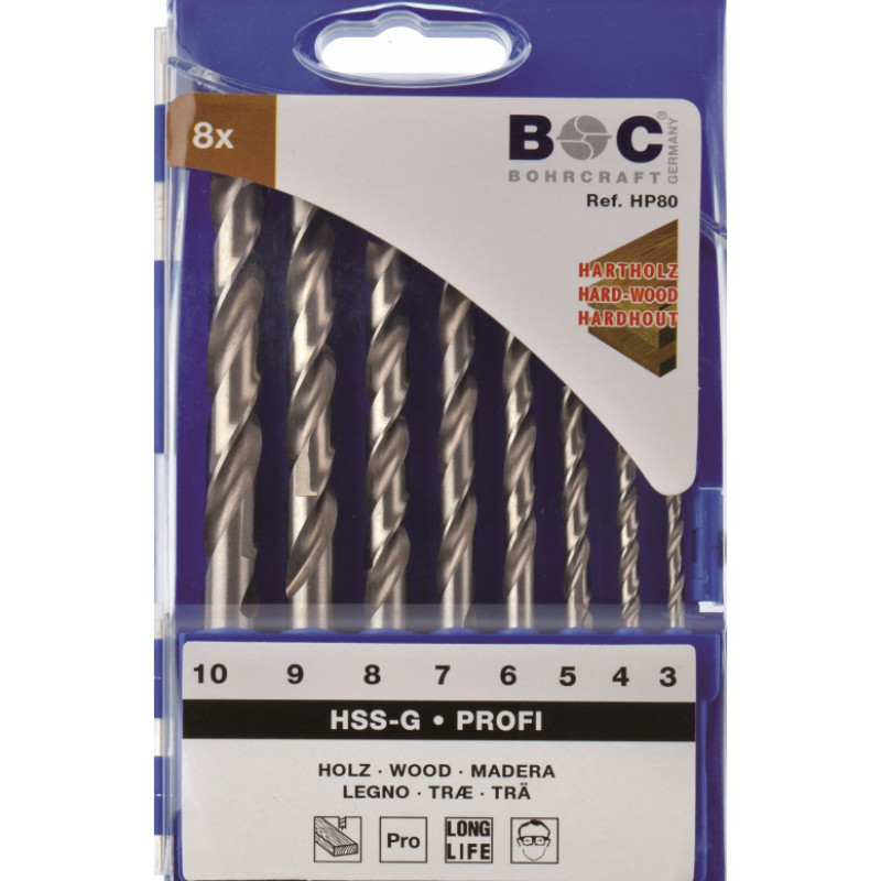 Bohrcraft Koka urbjmašīnu komplekts HP 80 (3 / 4 / 5 / 6 / 7 / 8 / 9 / 10 mm (8 gab.) BOHRCRAFT