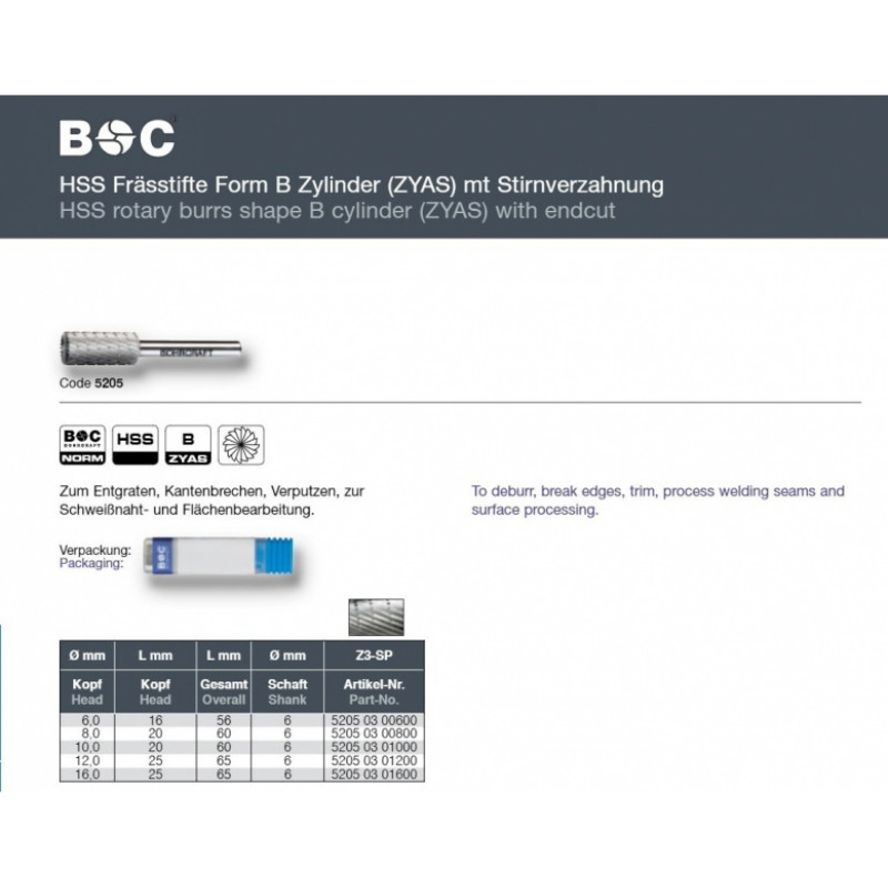 HSS frēze cilindriskas B (ZYAS) formas BOHRCRAFT(Ø 10 mm).