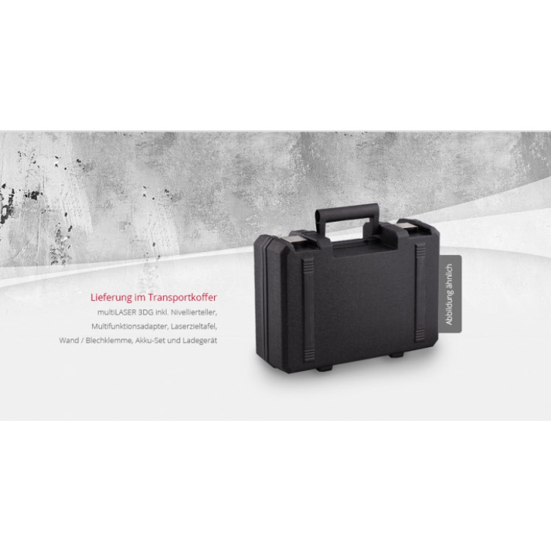 Komplektācija: multiLASER 3D G, adapteris, lamatas, akumulators un ērts uzglabāšanas korpuss.