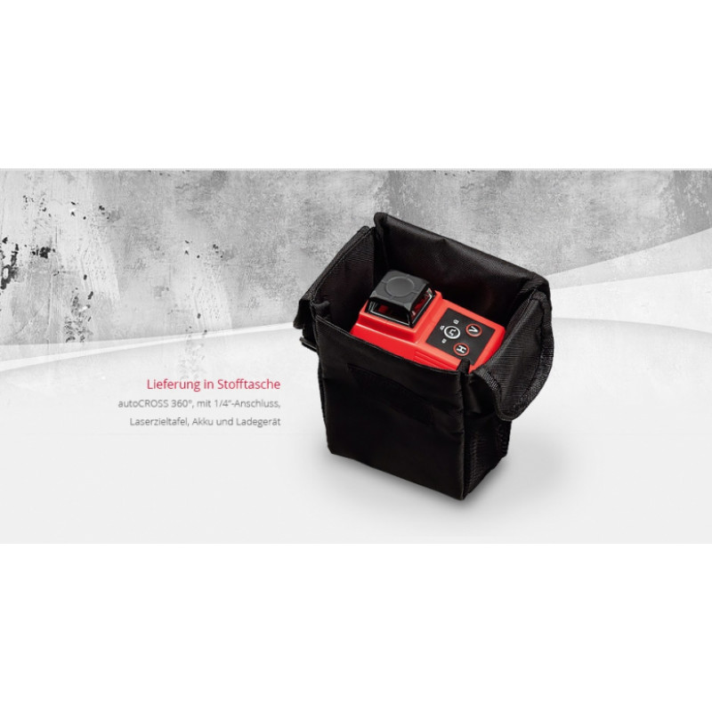 • autoCROSS 360º, ar 1/4 "vītnes savienojumu, lāzera mērķa plāksne, lādētājs, un gadījums.