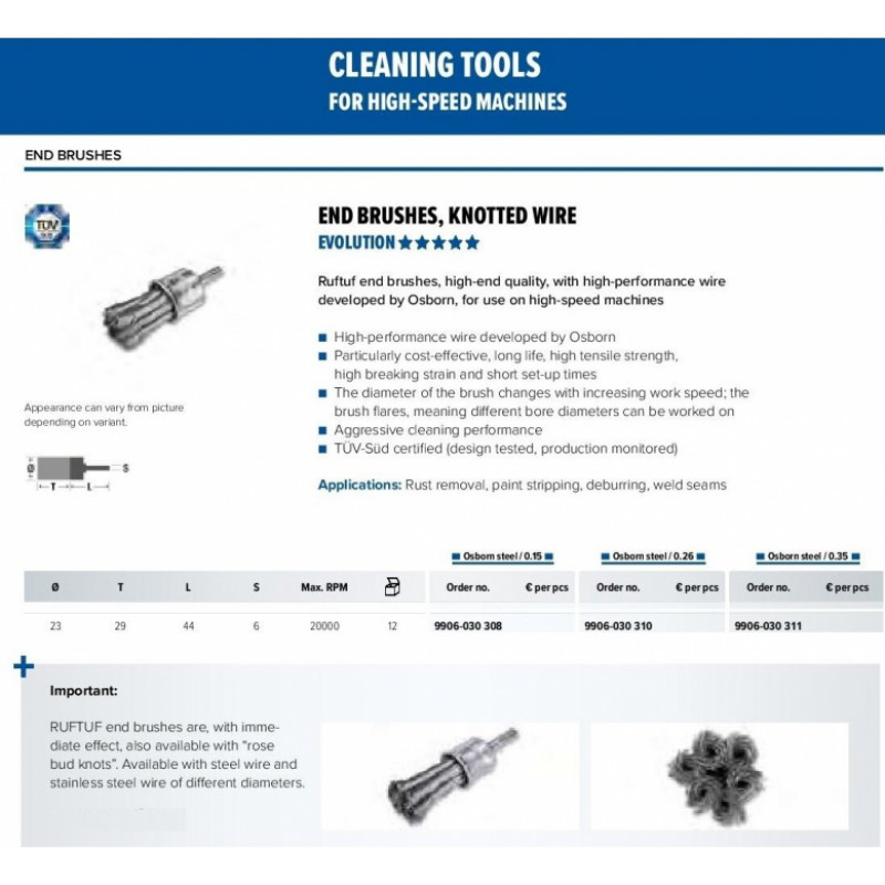 Krūzes formas birste ar savītu tērauda stiepli OSBORN (Ø 23; 0,26; T29).