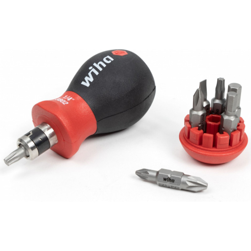 Strādājot slēgtā darba vidē, darbiniekiem ir nepieciešami īsi, viegli darbināmi skrūvgrieži, kas, neskatoties uz to izmēru, var pielikt lielu spēku. Skrūvgriezis Wiha Stubby 1/4 "SB īss skrūvgriezis ar dubultiem uzgaļiem ir ideāls risinājums šādiem apstākļiem. Ar kopējo garumu 85 mm, tas ir ideāli piemērots darbam šaurās vietās. Skrūvgrieža rokturī ir tvertne ar dubultiem uzgaļiem ar standarta skrūvi profili.parasti ir iespējams izvēlēties pareizo uzgali un paņemt to no roktura.