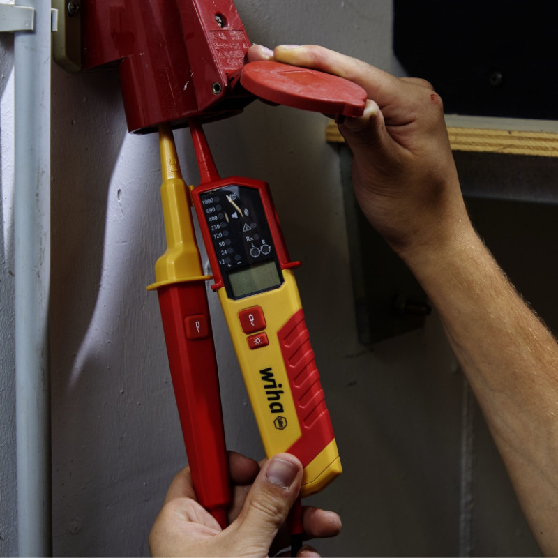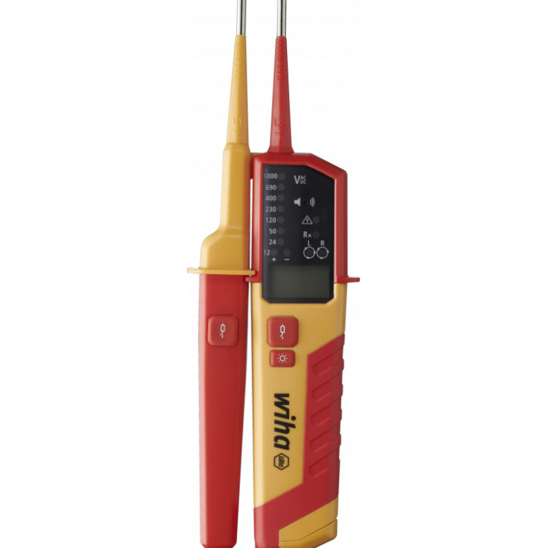 Drošības noteikums: nosakiet nulles spriegumu! Wiha sprieguma un nepārtrauktības testeris ir jūsu ideāls ikdienas pavadonis, lai viegli pārbaudītu šo drošības noteikumu priekšnoteikumu un palīdzētu jums izpildīt dažādas prasības jūsu ikdienas darbā. Tas ļauj pārbaudīt spriegumu plašā diapazonā no 0,5 V līdz 1000 V maiņstrāvai vai 1500 V līdzstrāvai. Turklāt sprieguma testeri var izmantot nepārtrauktības pārbaudei, optiskā rotācijas lauka pārbaudei, viena pola pārbaudei un automātiskai polaritātes noteikšanai. Turklāt var veikt arī pretestības mērījumus un frekvences mērījumus. Pateicoties lielajam digitālajam LCD displejam ar fona apgaismojumu un LED displeju, mērījumu rezultāti ir uzreiz nolasāmi. Papildu signāla skaņa norāda strāvas plūsmu nepārtrauktības pārbaudes laikā. Pateicoties integrētajam starplikam, pārbaudi var ērti veikt arī ar vienu roku. Turklāt Wiha sprieguma testerim ir integrēta zibspuldzes funkcija, kas nodrošina optimālus apgaismojuma apstākļus pat vāji apgaismotā darba vidē. Vienlaicīga abu pogu nospiešana uz abiem testa uzgaļu rokturiem ļauj veikt FI aizsargslēdža funkcionālo pārbaudi, pievienojot slodzi. Saskaņā ar mērījumu kategorijām CAT III līdz 1000 V un CAT IV līdz 600 V sprieguma un nepārtrauktības testeris no Wiha piedāvā maksimālu drošību darbam pie ēkas instalācijas un tieši uz zemsprieguma instalācijas avotiem.