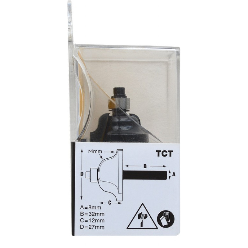 Noapaļoto stūru frēzēšanas iekārta STANLEY FATMAX TCT Rādiuss: r4,0 mm Darba daļas diametrs: 27 mm. 12mm. Kāta diametrs: 8 mm. Ar gultni.
