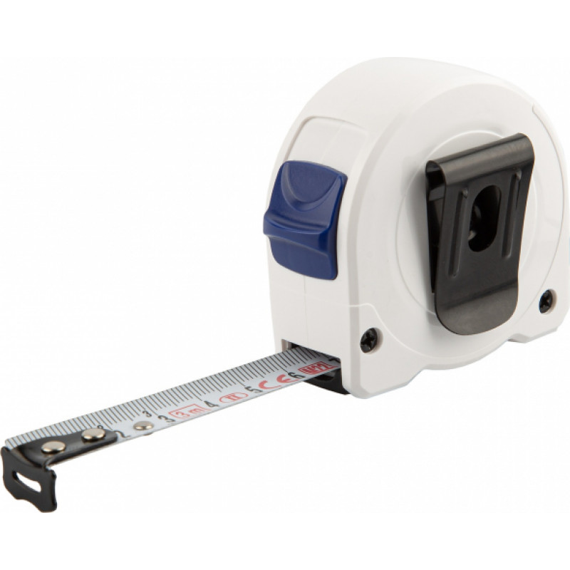 Bārs un āķis: - Trīs kniežu āķis nodrošina izturību. - Neilona pārklājums - lente ilgāk kalpo. Forma un konstrukcija: - 2. klases precizitāte. - CE sertifikāts un pārbaudes sertifikāts nodrošina, ka rulete ir ļoti uzticama un precīza. - Amortizējoša gumijas bremze nodrošina lentes aizsardzību, kad rulete tiek griezta. - Kvalitatīvs vērpes mehānisms nodrošina izturību. - Triecienizturīgs korpuss. - Automātiskā bremzēšanas sistēma. Instrumentu izmanto: - Abrazīvu materiālu mērīšanai.