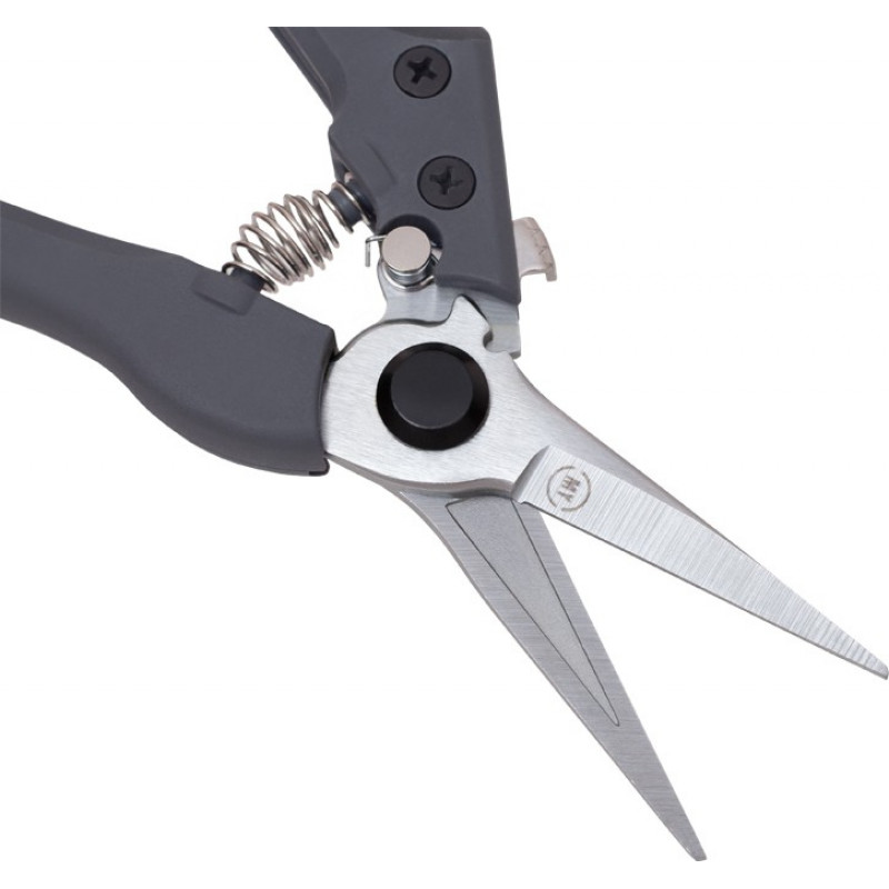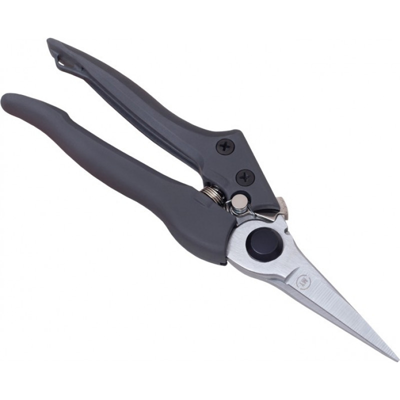 Šķēres ziediem FLO, ergonomiska konstrukcija. Pateicoties tam, ka asmeņi ir plāni un pagarināti, ir ērti strādāt ar ziediem un istabaugiem. Korpuss izgatavots no izturīga polimēra. Asmens izgatavots no oglekļa tērauda SK5. Automātiskais fiksators darba laikā neaizveras. Maksimālais griešanas diametrs - 10 mm.