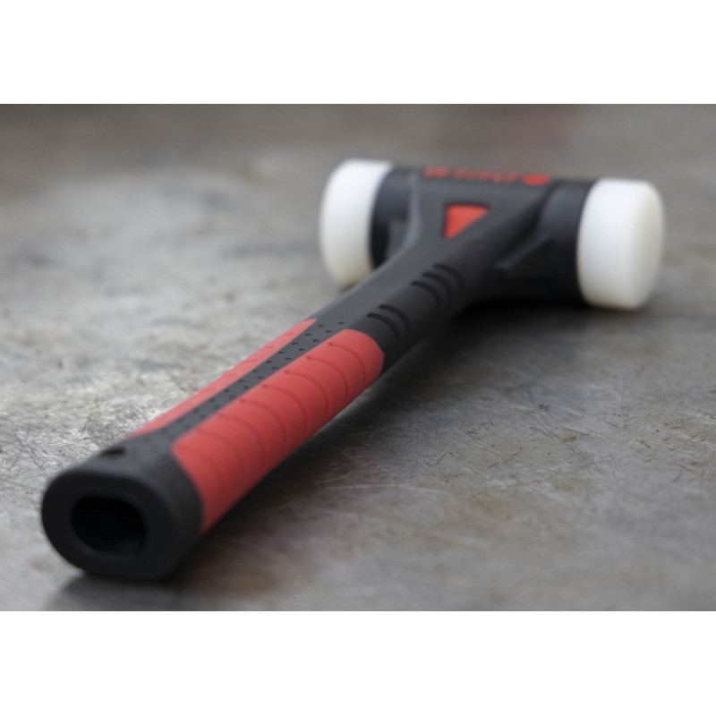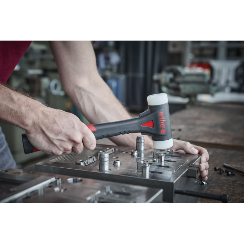 Īpaši uz smalkām virsmām ir ļoti svarīgi izvēlēties pareizo āmuru, lai izvairītos no bojājumiem. Mīkstais āmura trieciens ļauj lietotājam veikt izmērītus pozicionēšanas sitienus, aizsargājot smalkās virsmas un malas no spēcīga trieciena. Īpašs metāla lodīšu pildviela āmura galvā palīdz mīkstajam āmurim darboties pilnīgi bez atsitiena un tā, lai savienojumi būtu viegli. Turklāt āmurs pārsteidz ar kvalitatīvo plastmasas stiklšķiedras rokturi, kas papildus mazajam svaram ir gandrīz nesalaužams dobā roktura dizaina dēļ, tādējādi garantējot izturību. Pilnībā slēgtais stiklšķiedras pastiprinātais āmura rokturis, kas izgatavots no poliamīda, nodrošina augstu aizsardzību pret iespējamiem bojājumiem, ja, piemēram, metāla daļas saskaras ar apstrādātajām sagatavēm. Turklāt jaudīgais savienojums starp āmura galvu un rokturi nodrošina maksimālu drošību darba laikā, un neplīstošās neilona galviņas jebkurā laikā var nomainīt atsevišķi. Gumijas pārklājums uz ergonomiskas formas daudzkomponentu roktura nodrošina stingru un uzticamu satvērienu, garantējot pilnīgu kontroli pat ar eļļainām vai mitrām rokām. Roktura ergonomiskais dizains maigi saspiež locītavas ar katru kustību. Īpašajā konstrukcijā integrētā triecienaizsardzība vienlaikus aizsargā sagatavi un āmuru no bojājumiem.