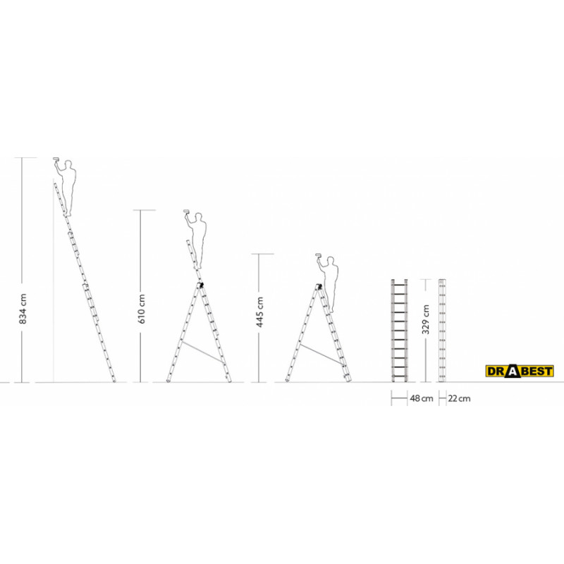 Drabest Trīsdaļīgas daudzfunkcionālas kāpnes DRABEST "PRO" MAX 3x11 ar kronšteiniem