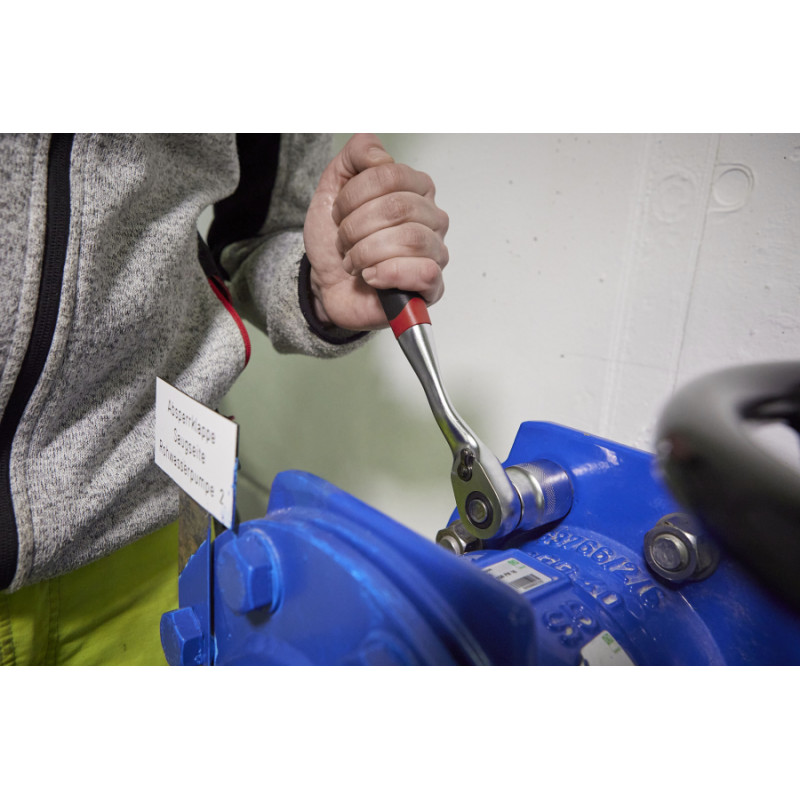 Sešskrūvju un uzgriežņu pievilkšanai un atslābināšanai ir nepieciešams milzīgs spēks. Izmantojot Wiha atgriezenisko sprūdratu, lietotāji var viegli atvērt un aizvērt jebkuru skrūvju savienojumu. Neslīdošais divkomponentu rokturis padara darbu īpaši ergonomisku un ērtu. Kompaktā sprūdrata galva papildus ļauj strādāt šaurās vietās. Apgrieztais dizains nodrošina paceltu satvēriena pozīciju, kas saglabā spēcīgu satvērienu un aizsargā pirkstus no traumām. Smalkiem zobiem sprūdratam ar 72 zobiem ir arī īss 5° atgriešanas leņķis, kas ļauj strādāt arī agrākajās vietās. Izmantojot pārslēgšanas sviru, ir viegli regulēt rotāciju pa labi vai pa kreisi. Izturīgais atgriezeniskais sprūdrata mehānisms nodrošina drošu darbību un var izturēt slodzes, kas ievērojami pārsniedz DIN prasības, pat līdz 768 Nm griezes momentam. Poga uz sprūdrata galviņas atbrīvo bloķēšanas lodi un ļauj ātri un viegli nomainīt kastes uzgriežņus vai adapterus. Izgatavots no augstas kvalitātes hroma vanādija tērauda, ​​grozāmais sprūdrata mehānisms izceļas ar savu izturību un izturību.
