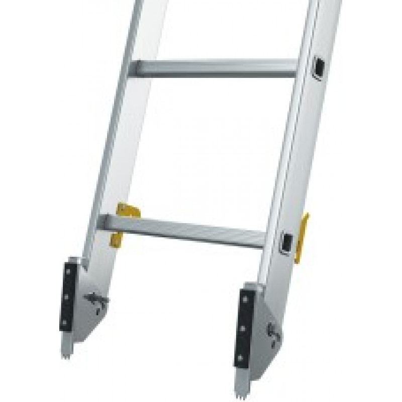 Gumijas riteņi aizsargā fasādi no skrāpējumiem un ļauj kāpnes viegli pārvietot uz augstākiem līmeņiem