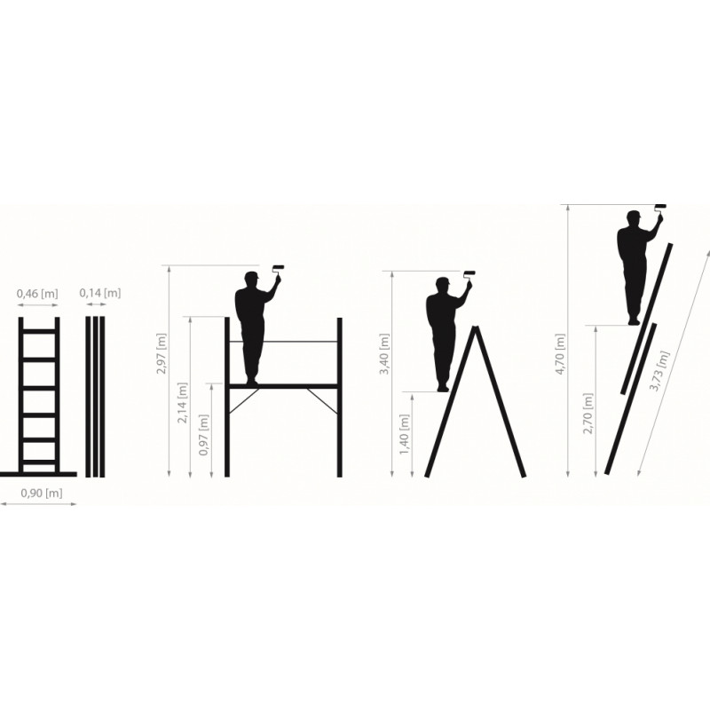 Kāpņu sastatnes ir īpaši izturīga un izturīga konstrukcija, kas izgatavota no augstas kvalitātes alumīnija, daudzus gadus izturīga pret nelabvēlīgiem laikapstākļiem. Paredzēts vieglākiem būvniecības, apdares un renovācijas darbiem gan ēkās, gan ārpus tām.