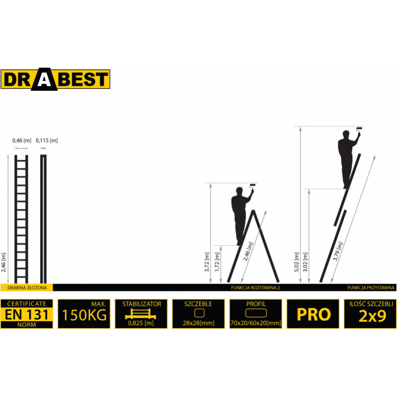Drabest Divdaļīgas daudzfunkcionālas kāpnes DRABEST 2x9