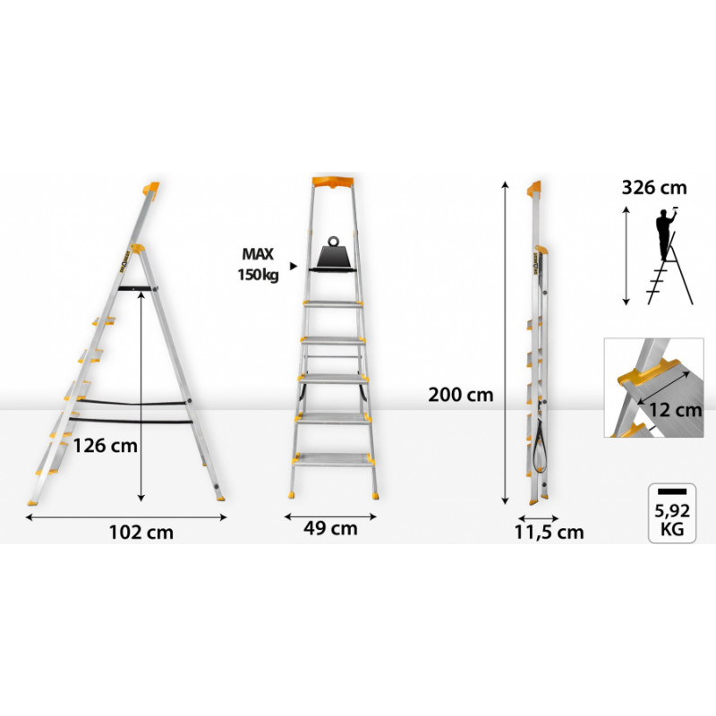 Pateicoties iespaidīgajam dizainam, kāpņu darba augstums ir ideāli piemērots lietotājiem, kuru vidējais augums ir 170 cm. Tas ļauj viegli sasniegt augstumu līdz 3,26 m, padarot šīs kāpnes par neaizstājamu instrumentu mājās.