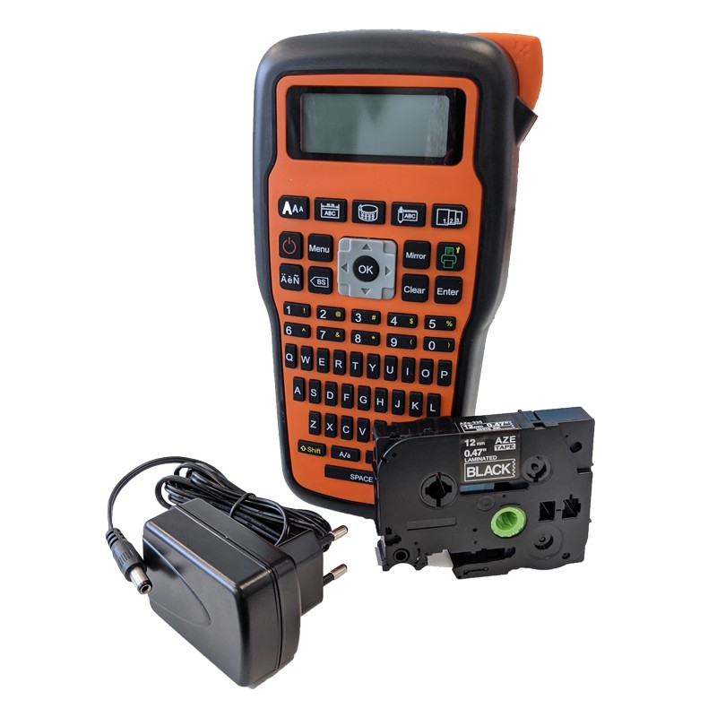 Priekšrocības: - Universāls - QWERTY tastatūra. - Maksimālais drukas ātrums 20 mm/s. - Īpaši elektriskie un sakaru simboli - Kabeļu un savienotāju etiķetes. Piemērotas etiķetes: - 3,5 / 6 / 9 un 12 mm platas; Komplektā ietilpst: - Marķieris komplektā ar 12 mm melnu uz baltas apdrukas lentes. Papildu informācija: - Izmanto 6xAAA baterijas (nav iekļautas komplektā).