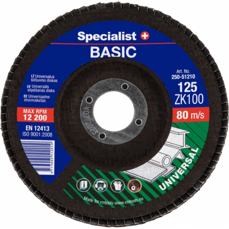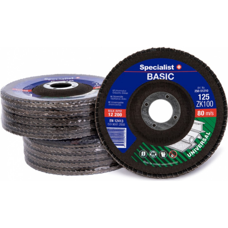 Specialist+ BASIC FLAP lapiņu diski, paredzēti universālai daudzu materiālu slīpēšanai: koksnei, metālam, plastmasai. Rupjākie izmēri paredzēti ātrākai apstrādei, metināšanas šuvju nolīdzināšanai, koka veidošanai vai dziļas rūsas noņemšanai, smalkākie – virsmas nolīdzināšanai, virsmu pabeigšanai, slīpēšanai un tml. Specialist+ produktu kvalitatīvie materiāli un liels diska lapiņu skaits ļaus efektīvi un produktīvi strādāt.