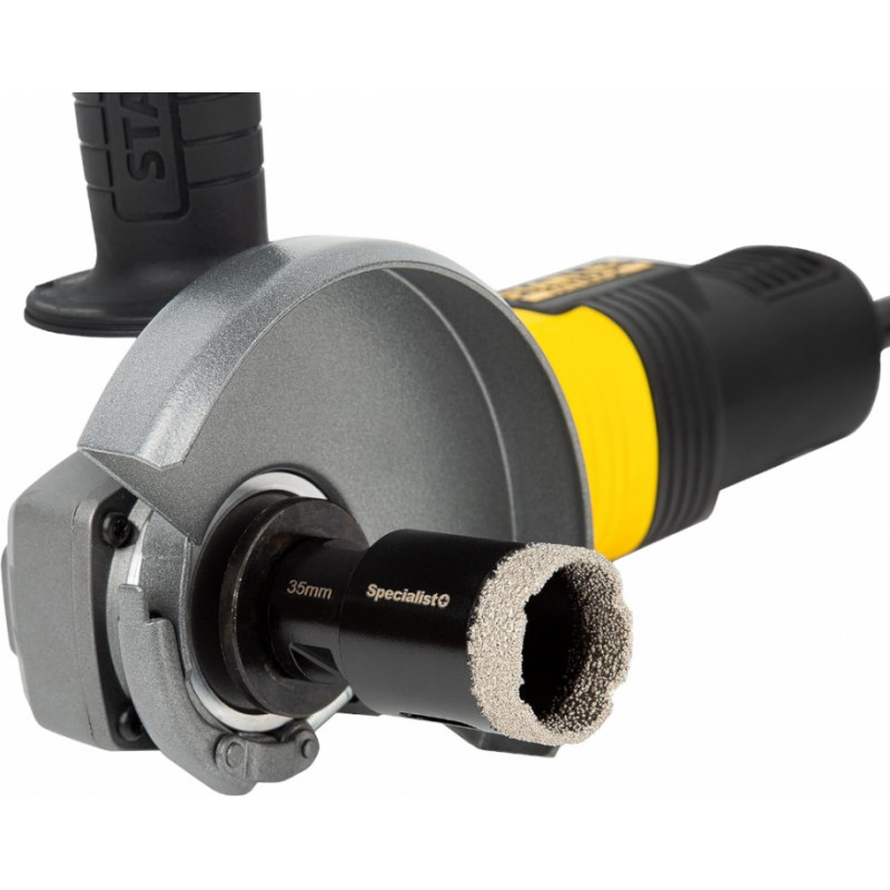 Dimanta kroņurbis ir paredzēts lietošanai ar leņķa slīpmašīnu, pēc jaunas, progresīvas vakuuma metodes izgatavoti dimanta urbji, izceļas ar ilgmūžību un lielu efektivitāti. Šie urbji ir paredzēti īpaši cietu materiālu urbšanai gan sausā, gan slapjā veidā. M14 vītņveida stiprinājums ir paredzēts leņķa slīpmašīnām. Leņķa slīpmašīna nodrošina lielus apgriezienus, kas ir nepieciešami efektīvam urbja darbam. Īpaši efektīvs veids, sausi urbjot cietus materiālus, tādus kā akmens masa, ļoti cietas akmens masas flīzes. Lietojot ūdeni, var pagarināt urbja kalpošanas laiku.