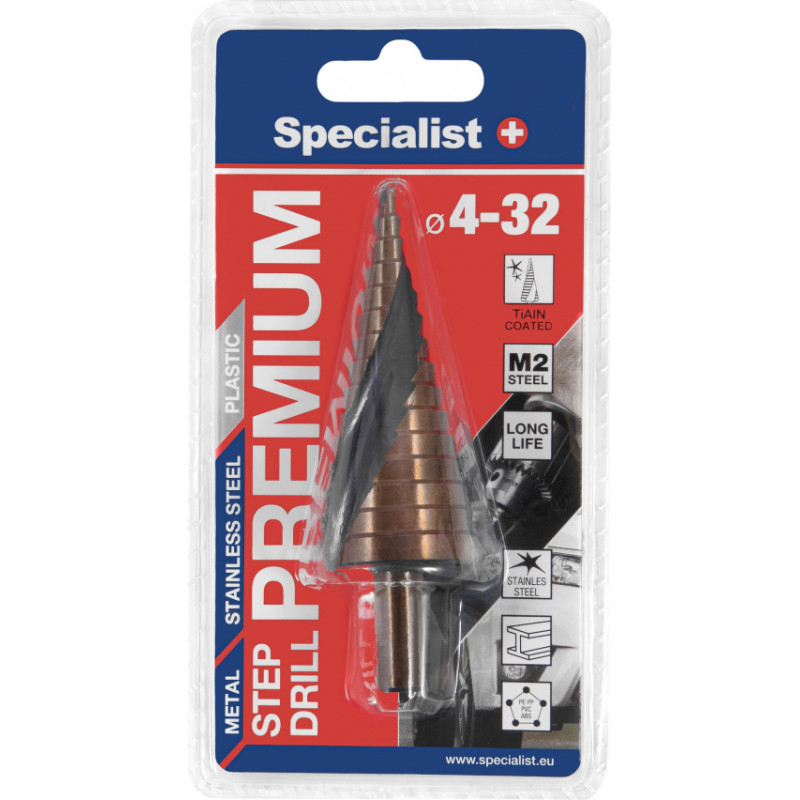 Metāls: kvalitatīvs M2 tērauds nodrošina urbja izturību un izturību. Titāna pārklājums (TIN) samazina berzes efektu - urbis urbj ātrāk un mazāk karst (ilgāks urbšanas laiks). Forma un dizains: Pakāpju urbis - no 4 līdz 20 mm. Katrs solis ir uzasināts, lai urbtu un tīrītu automātiski. Trīskāršais plakanais kāts stingri iekļaujas elektroinstrumenta turētājā un neslīd. Instrumentu izmanto:Krāsaino un vieglo metālu urbšanai. Nerūsējošā tērauda lokšņu metāla urbšanai. Tērauda lokšņu metāla urbšanai. Plastmasas urbšanai.