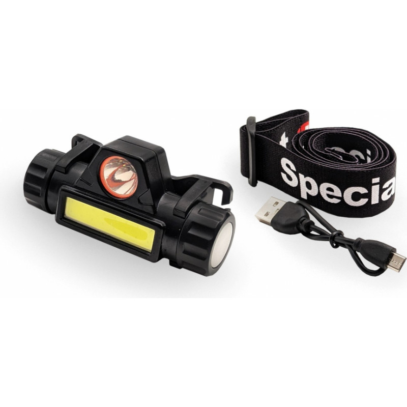 “Specialist+” prožektors piestiprināšanai uz galvas. Īpašības un īpatnības: • Regulējama jauda, uzlādējama 2 200 mAh baterija. • Iemontētais magnēts ļauj piestiprināt prožektoru metāla virsmām. • Var izmantot arī kā rokas prožektoru. • Papildu sprādze siksnā ļauj prožektoru izmantot arī uz krūtīm. • Pilnīgi uzlādēts prožektors strādā 8–10 stundas.
