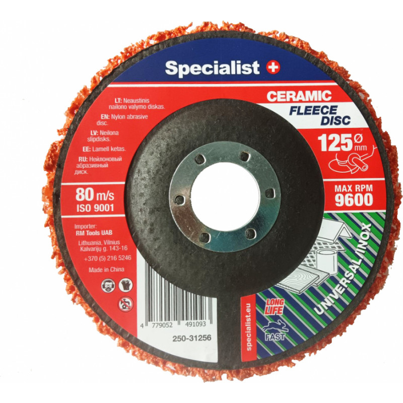 - Neausta neilona tīrīšanas disks rūsas, vecas krāsas tīrīšanai, oksīdu, lakai no metāla, nerūsējošā tērauda, koka, betona. - Piemērots nerūsējošajam tēraudam, čugunam, kokam. - Ļoti augsta tīrīšanas efektivitāte un ilgs kalpošanas laiks. - Divreiz lielāka veiktspēja nekā standarta Specialist+ diskam. - Lietošanai ar leņķa slīpmašīnu.