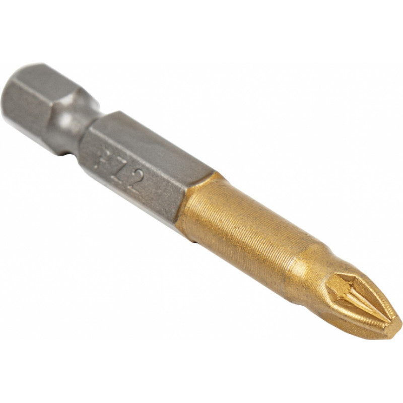 • Pozidriv tipa Titanium uzgaļi iepakojumā (parastais +) Uzgalim pa virsu ir uzklāta titāna slānis, tāpēc tas ir līdz pat 3 reizēm cietāks. • Titāna kārtiņa pasargā no korozijas. • Dēļ cietinātās ārpuses arī skrūvgrieža iekšpuse ir stiprināta, lai varētu attīstīt lielāku griezes momentu. • Ļoti precīza uzgaļu ģeometrija, lai bhūtu ideāla saķere ar skrūvi.