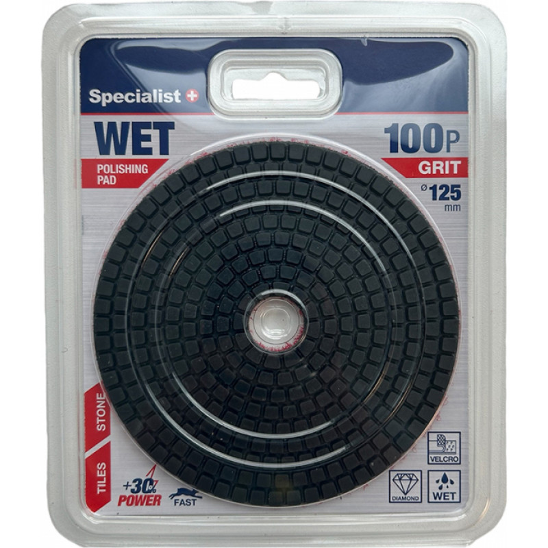 • Rupjums 100P • Lietošanai uz 125 mm ķīļveida zoles • Piemērots mitrai lietošanai. Instrumentu izmanto: • granīta plātņu slīpēšanai • Keramikas flīžu slīpēšanai • betona slīpēšanai • Keramikas slīpēšanai