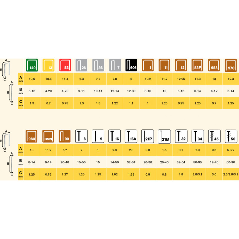 13. tipa skavas furnitūras, dažādu materiālu, ādas piestiprināšanai utt. Šaurākas skavas uz izstrādājuma mazāk pamanāmas. Blistera tipa nelieli iepakojumi. Kvalitatīvās Rapid skavas izceļas ar izturību, tādēļ vienmēr nevainojami ieduras pat cietā pamatnē. Labs pārklājums pasargā no korozijas. Nerūsējošā tērauda skavas, kad nepieciešama īpaša stiprība un izturība pret koroziju.