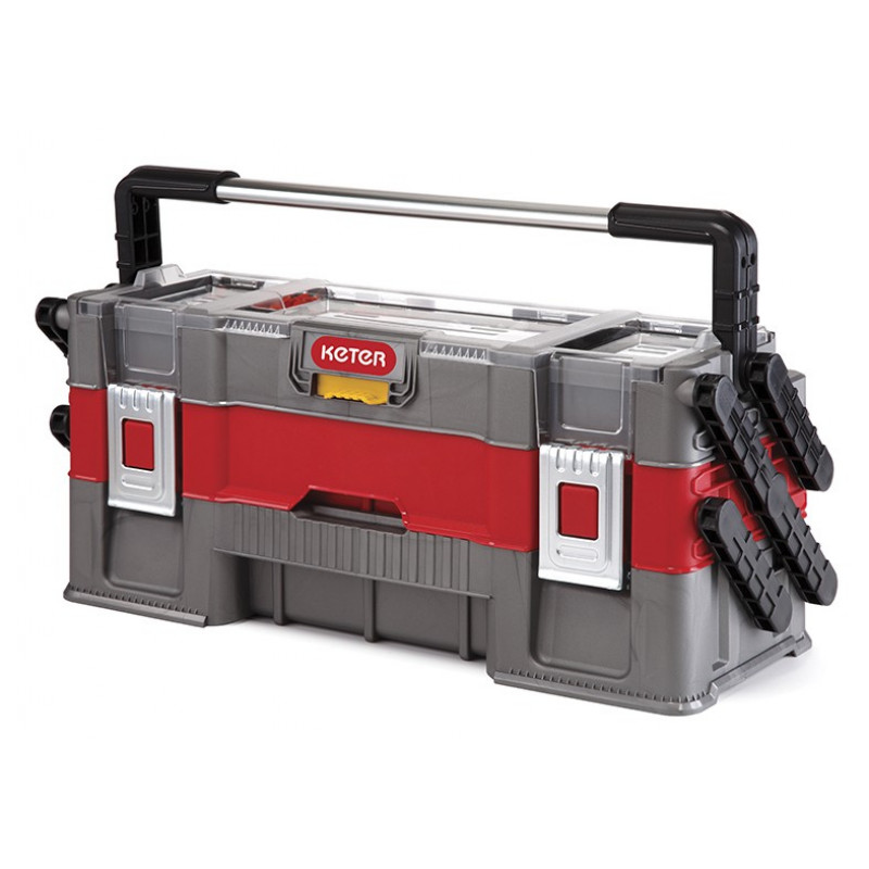 Izturīga, ietilpīga MasterPro sērijas 3 līmeņu kaste, ko var izmantot gan kā organaizeru, gan kā instrumentu kasti. Ērta sistēma, kas ļauj uzglabāt daudz dažādu instrumentu. Augšējam līmenim ir papildu kājiņas, kuras neļauj kastei apgāzties. Nodalījumu lielumu var mainīt pēc nepieciešamības. Metāla fiksatori. Kastes izmēri: platums - 54cm, dziļums - 40cm, augstums - 46cm.