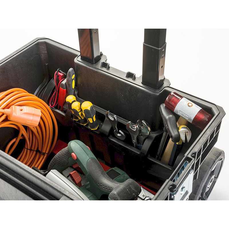 Ļoti ietilpīga un īpaši izturīga kaste nopietnam profesionālim, lieliski piemērota darbarīku transportēšanai, savienojama ar citām "Gear" sērijas kastēm, tāpēc visus jūsu darbarīkus transportēt būs īpaši viegli. Starplikas nodrošina, lai darbarīki nesarūsētu pat gadījumā, ja tiek nolikti glabāšanai mitri, jo starplikas tos pilnīgi izolē no mitruma un putekļiem. Izturīgi aizslēgi, teleskopisks rokturis. Spēj izturēt pašus lielākos pārbaudījumus būvlaukumā. 56x46x48cm