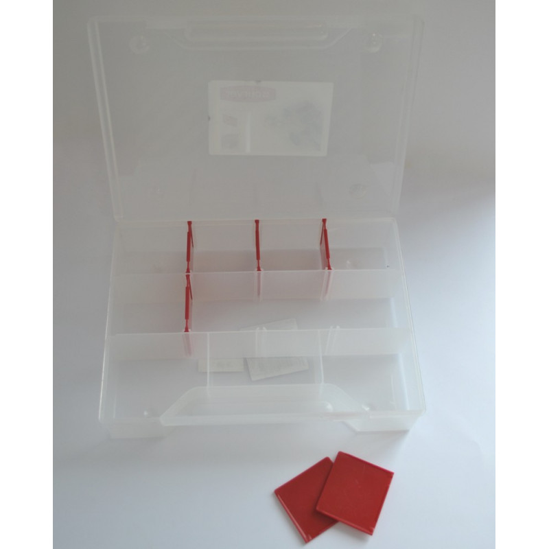 Ērts organaizers no izturīgas plastmasas, piemērots gan meistariem, gan sadzīvē - dažādu sīku priekšmetu turēšanai, nodalījumu lielumu var mainīt. Organaizera izmēri: platums - 24cm, dziļums - 18cm, augstums - 5cm.