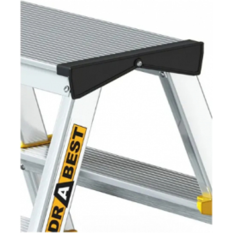 Kvalitatīvas divpusējas alumīnija kāpnes ar salokāmām kājām – izstrādājums, kas paredzēts darbam zemākā augstumā. To raksturo izcila stabilitāte un izturība, slodze sasniedz līdz 150 kilogramiem. Lieliski piemērots ikdienas darbam birojā, mājasdarbu veikšanai vai kā palīglīdzeklis, strādājot veikalā.