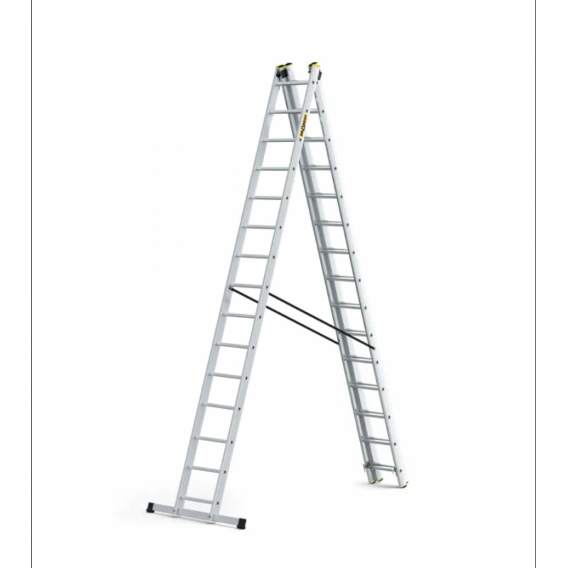 Trīsdaļīgas daudzfunkcionālas kāpnes DRABEST "PRO" 3x15 Mūsdienu PRO daudzfunkcionālo kāpņu modelis ir īpaši izturīgs produkts, kas paredzēts visprasīgākajiem klientiem. Lielisks darba instruments profesionāļiem, kuri tiecas pēc visaugstākajiem drošības un izturības standartiem. Spēcīgas 95x25 mm profila auklas. Var salocīt stāvošā, brīvi stāvošā un trešajā pagarinājuma pozīcijā Neslīdošas, nospiežamas pusapaļas pēdas Uzlabots stabilizatora stienis ar 1200 mm garām skrūvēm Apzīmogoti 28 x 28 mm profila pakāpieni Papildu buferi atvieglo kāpņu uzstādīšanu vertikāli Spēcīgi aizbīdņi un automātiskā bloķēšana nodrošina pilnīgu kāpņu stabilitāti Atbilst EN 131 standartam TÜV Rheinland drošības sertifikāts Iespēja pagarināt kāpnes uz kāpnēm Kausa āķis BEZ MAKSAS!