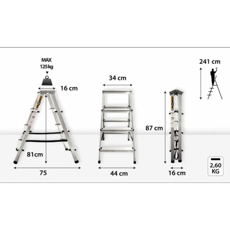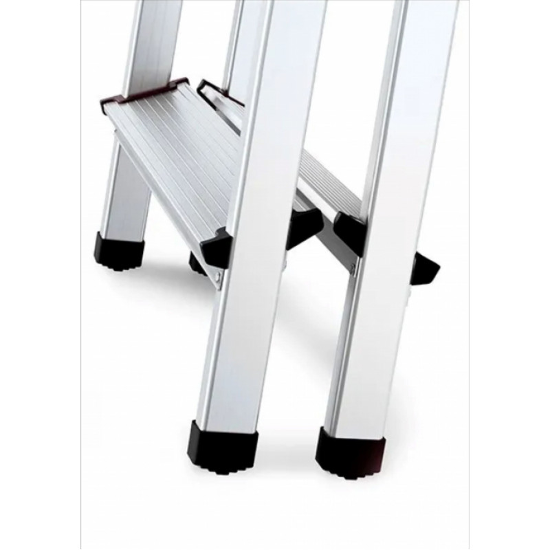 Divpusējas 4 pakāpju alumīnija kāpnes ir ideāls risinājums. Tās ergonomiskais dizains apvieno alumīnija vieglumu ar nepieciešamo stabilitāti, nodrošinot komfortu un drošību lietošanas laikā.