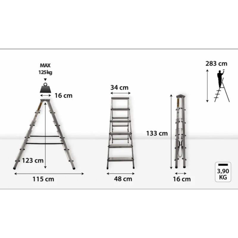 Drabest HOME abpusējas alumīnija kāpnes, 6 pakāpieni, 125 kg