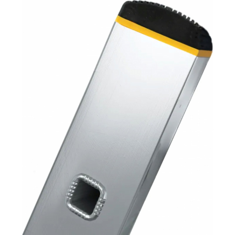 DRABEST PRO alumīnija kāpnes, 13 pakāpieni, 150 kg Profesionālās alumīnija kāpnes izmanto tūkstošiem tehnisko speciālistu, kas veic iekārtu apkopes, renovācijas vai iekšējās apdares darbus. Kāpņu parametri ir izvēlēti tā, lai tie būtu piemēroti darbam lielā augstumā. Kāpņu svaru atbalsta spēcīgas un platas 60 x 20 mm auklas. Lielākai stabilitātei šķērsstieņi ir pareizi gofrēti. Pakāpju savienošana, izmantojot presēšanas tehnoloģiju JAUNUMS - neslīdošas plastmasas kājas ar kvalitatīvu gumiju! Stabila konstrukcija nodrošina drošību intensīva darba laikā augstumā Viegls, izturīgs pret koroziju Atbilst Eiropas standartam EN 131 TÜV Rheinland drošības sertifikāts Kausa āķis BEZ MAKSAS!